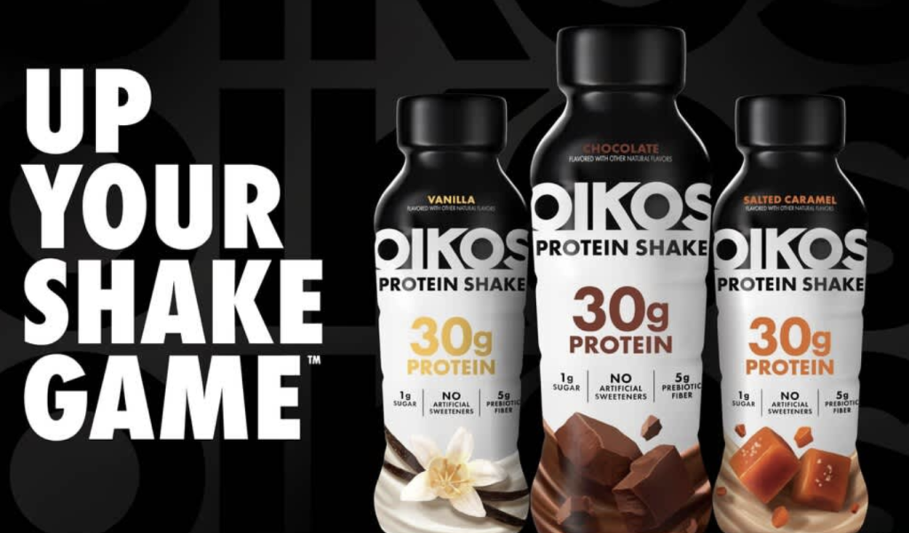 The 2026 Oikos “The Big Hill” Superbowl spot features both Oikos Triple Zero yogurt cups and the shelf-stable Oikos Protein Shakes and is part of the brand’s “Stronger Makes Everything Better” positioning platform.  The two products shown in this advertising: Oikos Protein Shakes and Oikos Triple Zero are the ones we observed in stores, not the refrigerated shakes.